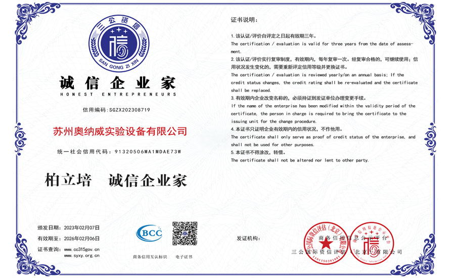 誠信建設(shè)萬里行——奧納威3A誠信認(rèn)證完成